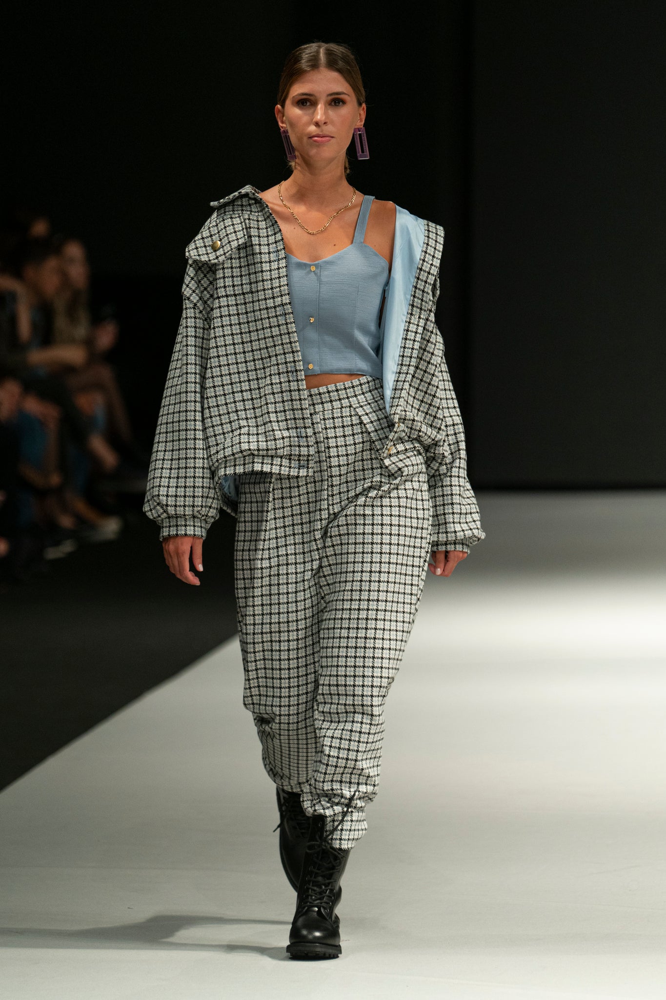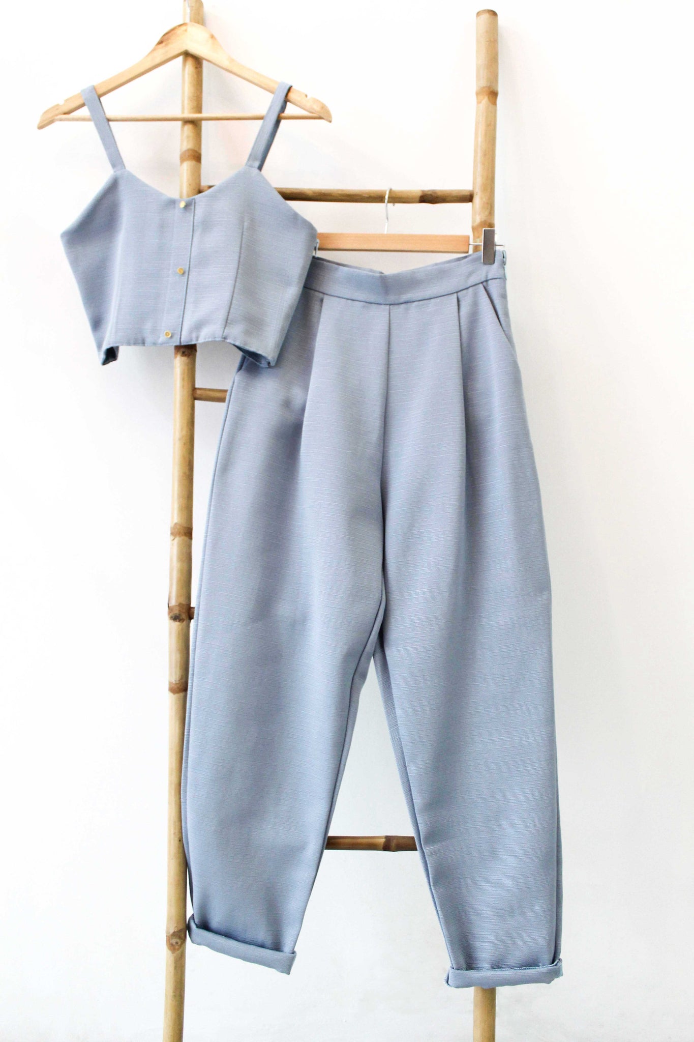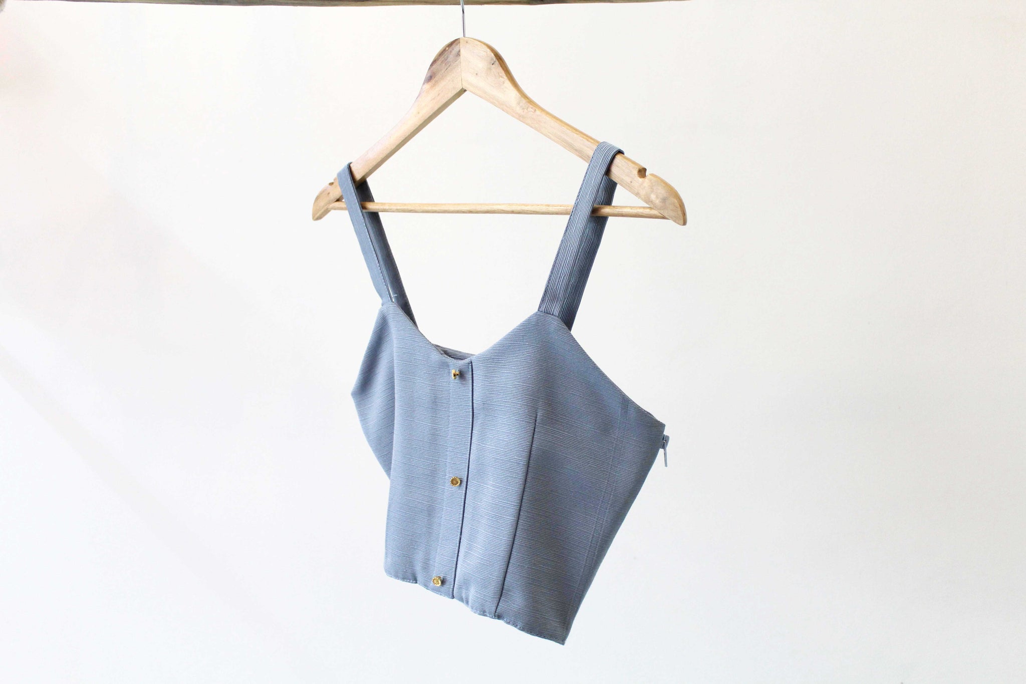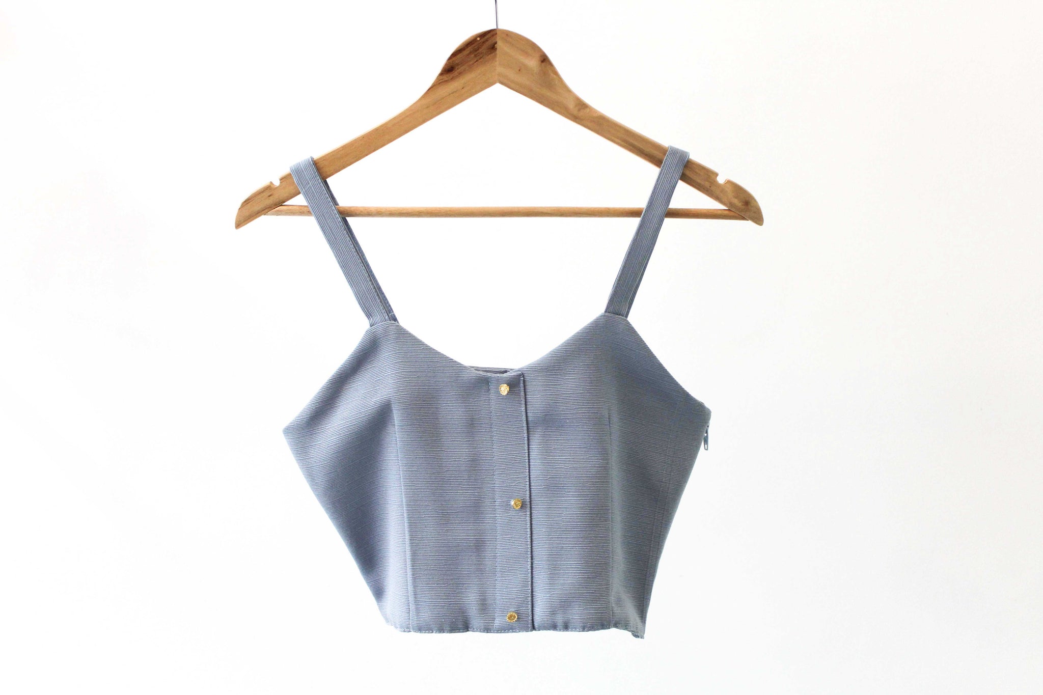 Crop top with shirt buttons on the front and an invisible zip on the side.