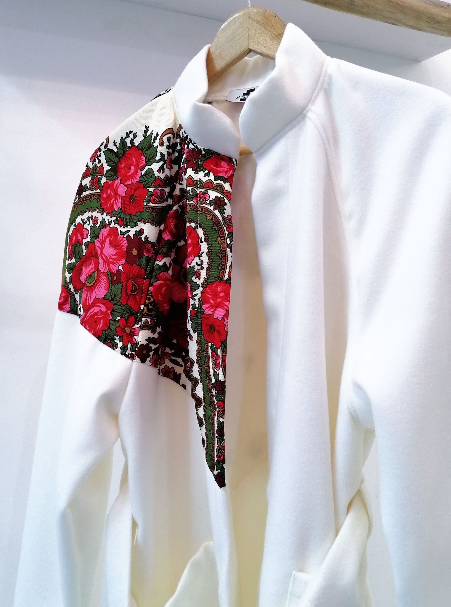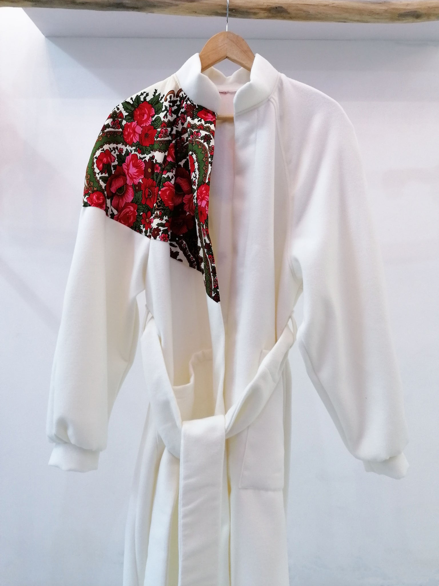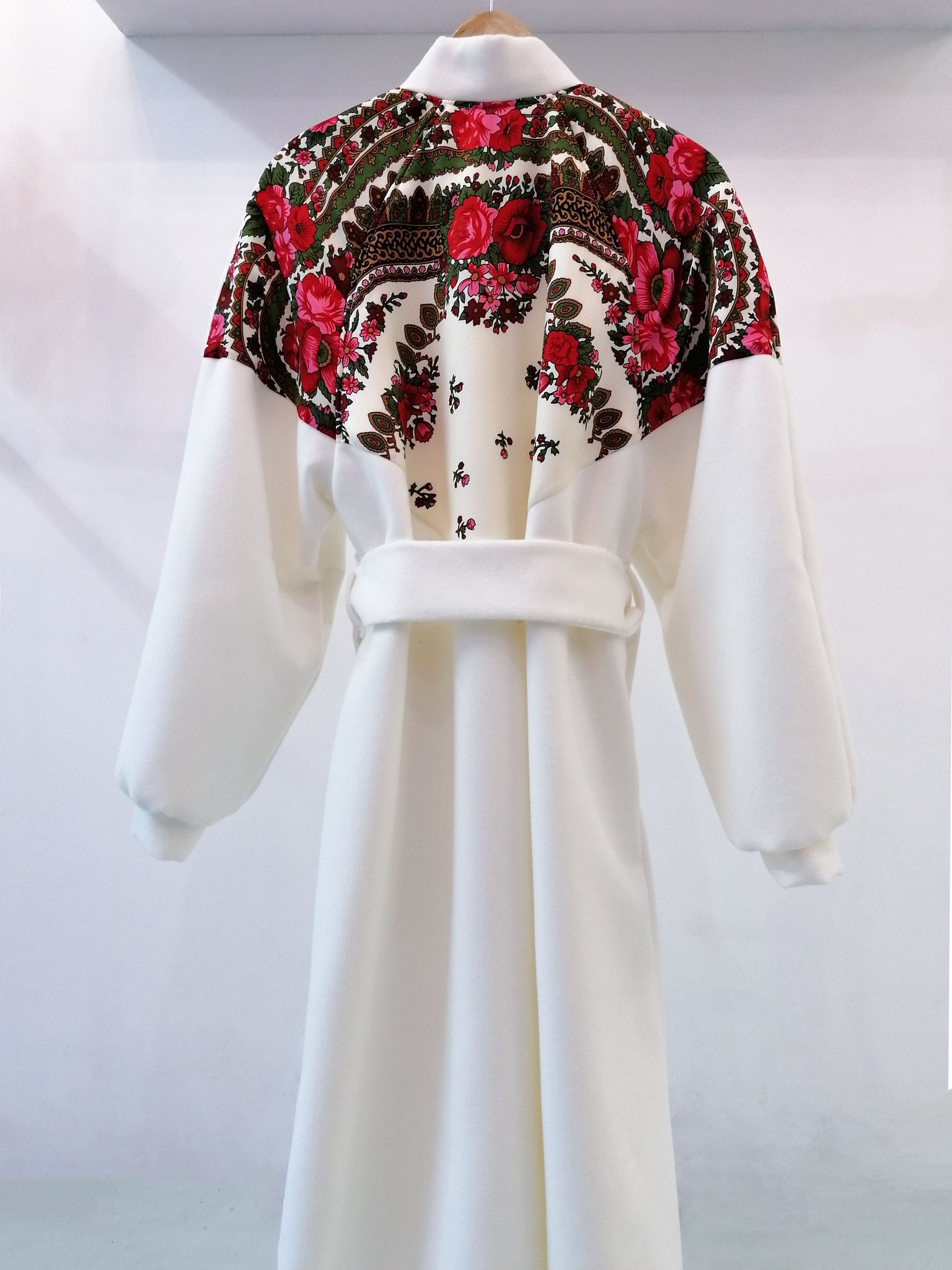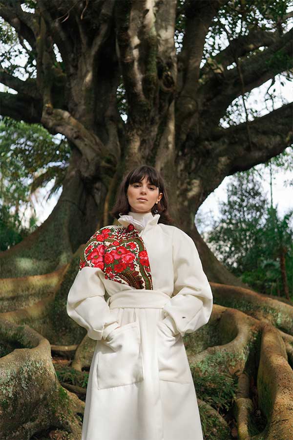 Long wool coat with the traditional azorian scarf and a belt around the waist.