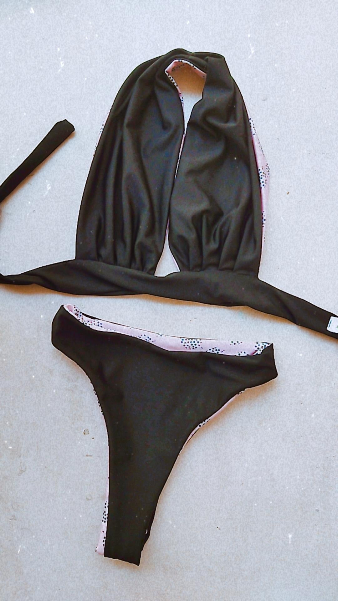 Reversible bikini in a very good quality Lycra. High waist and low cut on the back.