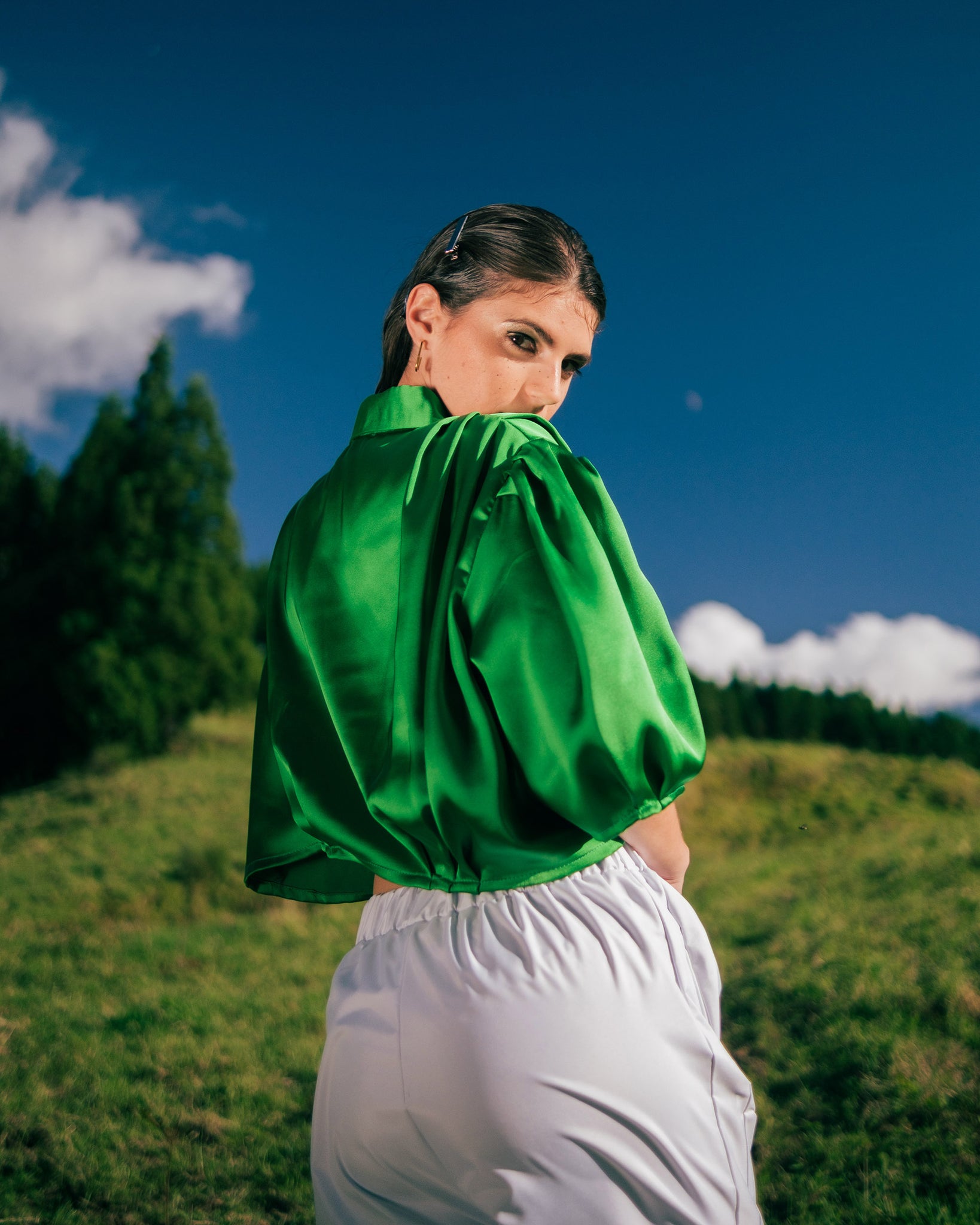 Our best seller shirt in this amazing bright silk, light with golden buttons.
