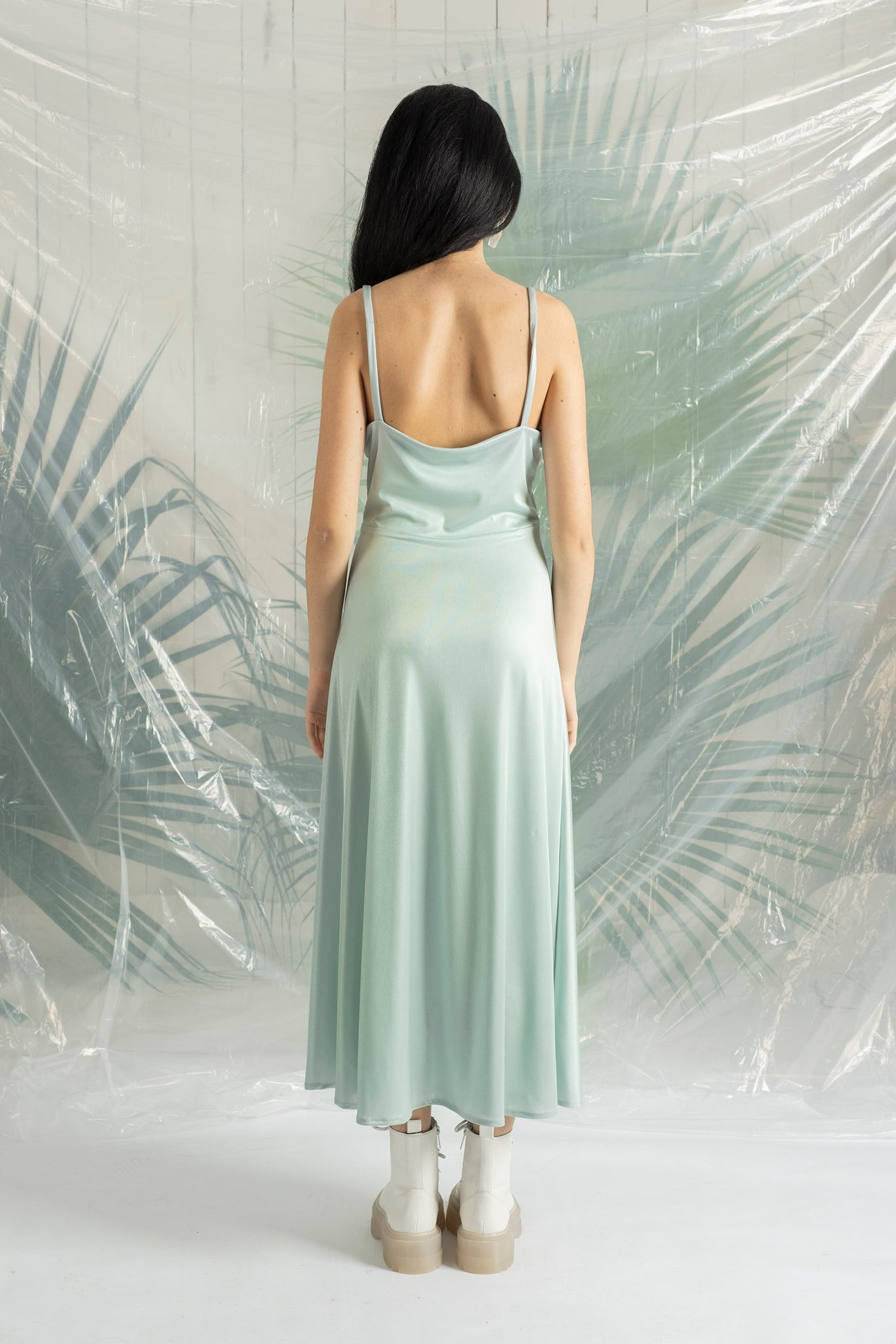 Strapped dress with a evasé cutted skirt in mint.